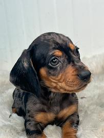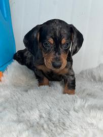 Disponibile da subito bellissimo cucciolo maschio di bassotto, colore silver Arlecchino, libretto sanitario, vaccino, gia sverminato, genitori visibili sul posto. No regalo !