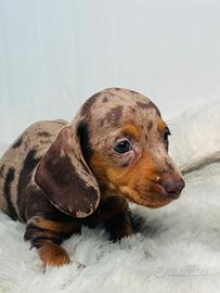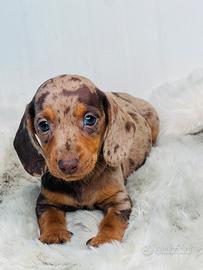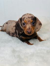 Disponibile da subito bellissimo cucciolo maschio di bassotto, colore Arlecchino cioccolato, libretto sanitario, vaccino, gia sverminato, genitori di nostra proprietà. No regalo !