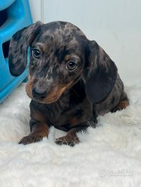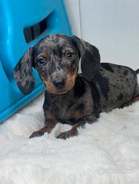 Disponibile da subito bellissimo cucciolo maschio di bassotto, colore silver Arlecchino,libretto sanitario, vaccino, gia sverminato,genitori di nostra proprietà.No regalo !