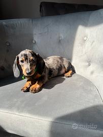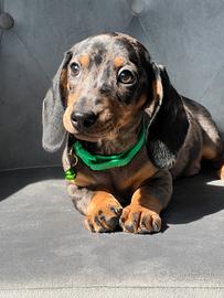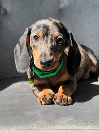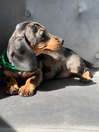 Disponibile da subito bellissimo cucciolo maschio di bassotto, colore silver Arlecchino, libretto sanitario, vaccino, gia sverminato, genitori di nostra proprieta. No regalo !