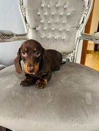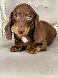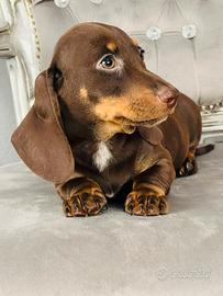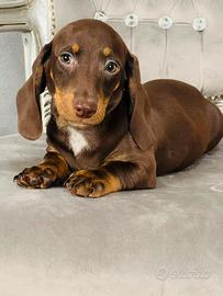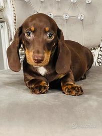 Disponibile da subito bellissimo cucciolo maschio di bassotto, colore cioccolato, libretto sanitario, vaccino, gia sverminato, genitori di nostra proprietà. No regalo !