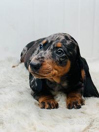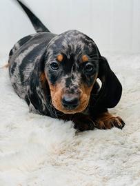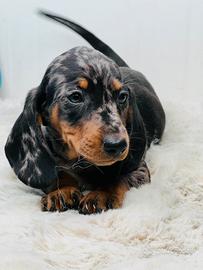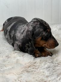Disponibile da subito bellissimo cucciolo maschio di bassotto, colore silver Arlecchino, libretto sanitario, vaccino, gia sverminato, genitori di nostra proorieta. No regalo !