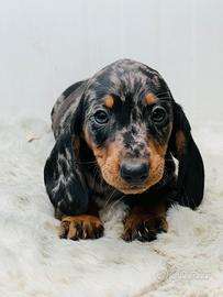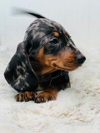 Disponibile da subito bellissimo cucciolo maschio di bassotto, colore silver Arlecchino, libretto sanitario, vaccino, gia sverminato, genitori di nostra proprietà. No regalo !