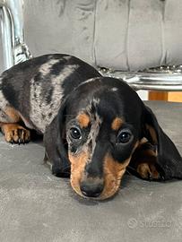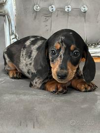 Disponibile da subito bellissimo cucciolo maschio di bassotto, colore silver Arlecchino, libretto sanitario,vaccino, gia sverminato, genitori di nostra proprieta. No regalo!
