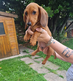 Maschietti di colore fulvo futura taglia nana cresciuti in casa con mamma e papà e con altro bassotti abituati alle persone ed agli animali molto socievoli.