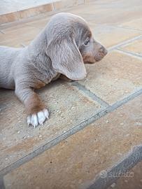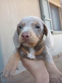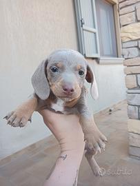 Vendo cuccioli di bassotto nano tan isabella Disponibile due maschietti colore isabella tan, nati in casa, abituati al tappetino igienico e agli altri cani Entrambi i genitori sono visibili in casa e di taglia mini Sono nati il 20 febbraio, hanno già effettuato due sterminazioni e sono stati dotati di micro chip Verranno ceduti a partire dai primi di maggio Per il cucciolo della prima foto la richiesta è di 1000€ Per il secondo chiedo di essere contattata in quanto presente un lieve stortamento della coda Grazie