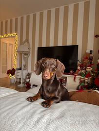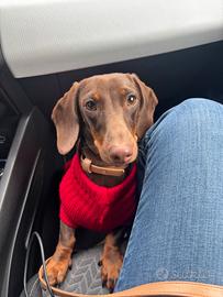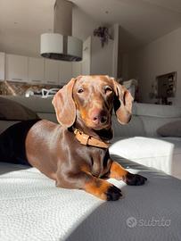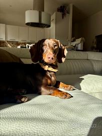 Bassotto color cioccolato di 1 anno e 3 mesi Dimensione nano peso di 5,6 chili Temperamento dolce e molto socievole. Pagamento per Monta o scelta di tenere un cucciolo della cucciolata, poi da decidere con i rispettivi proprietari della femmina. Per qualsiasi informazione o delucidazione in più non esitate a contattarmi a questo numero di telefono 3206774577