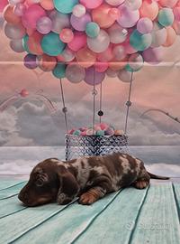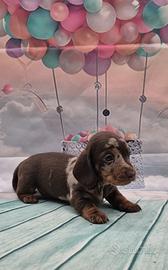 Splendida cucciolata di Bassotti nano / kaninchen , nati il04/09/2025 cioccolato e arlecchino cioccolato , nati e cresciuti amorevolmente in casa . Mamma nano cioccolato , papà cioccolato kaninchen . Genitori con test genetici effettuati . Verranno ceduti non prima di 60/75 gg. con libretto sanitario , vaccinazione avviata, iscrizione anagrafe canina , microchip , 3 sverminazioni , test delle feci e giardia , certificato di buona salute , pedigree Enci e kit cucciolo , già abituati a sporcare sulla traversina . Possibilità accompagnamento a domicilio . Solo per veri interessati . Per ulteriori informazioni contattatemi sul numero 3391690882 o messaggiare su Whats app . No ore pasti . No regalo. Vincenzo
