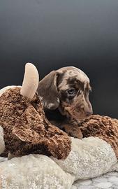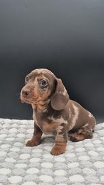 Splendida cucciolata di Bassotti nano / kaninchen , nati il 17/01/2026 tutti arlecchino cioccolato, 2 femminucce e un maschietto nati e cresciuti amorevolmente in casa . Mamma nana cioccolato papà arlecchino cioccolato kaninchen. Genitori entrambi testati geneticamente. I cuccioli verranno ceduti non prima dei 60/75 gg con possibilità di consegna al vostro domicilio previo rimborso spese viaggio. Il cucciolo verrà ceduto con libretto sanitario, iscrizione anagrafe canina, vaccinazione avviata, microchip , 3 sverminazioni , test delle feci , certificato di buona salute, pedigree ENCI e kit cucciolo . Abituati a sporcare sulla traversina . Solo per veri interessati . Per ulteriori informazioni contattatemi sul numero 3391690882 o messaggiare su WhatsApp . No ore pasti . No regalo. Vincenzo