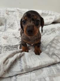Cucciolata nata il 28/03/2026 -1 cioccolato femmina -2 arlecchino silver femmine -1 arlecchino choco maschio -1 nero focato femmina Cuccioli di bassotto tedesco nano vengono ceduti al raggiungimento dei 60gg di età, quindi intorno al 27 maggio 2026. La mamma dei cuccioli è una bassotta nero focata nana e il papà è un bassotto kaninchen arlecchino cioccolato. I genitori dei cuccioli sono entrambi di mia proprietà. I cuccioli verranno ceduti dotati di microchip, ciclo vermifugo, libretto sanitario e vaccino. Possibilità di trasporto dei cuccioli in tutta Italia con corriere fidato ASL con il quale abbiamo già collaborato in diverse occasioni e ci siamo trovati bene. NON hanno pedigree. Genitori visibili in loco Per info 3884465116