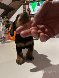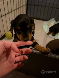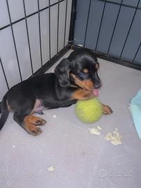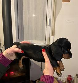 Vendesi bellissimo cucciolo di bassotto nano maschio nero focato. Nato il 22 novembre 2025, verrà ceduto a fine gennaio primi di febbraio.
