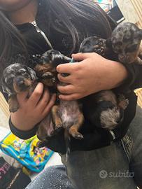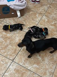 Salve vendo cuccioli di bassotto merle mamma kaninchen papa nano disponibili dal 1 maggio al momento hanno 30 giorni disponibili maschi e femmine