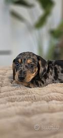 Bellissimo cuccioli di bassotto nano arlecchino silver con occhi blu.verranno ceduti con vaccinazione microchip vaccino vermifughi certificato medico di buona salute passaggio di proprietà dopo i 60 giorni d'età possibilità di finanziamento