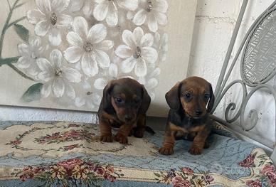 2 cuccioli di bassotto nano 1 maschietti e 1 femminuccia di 2 mesi , di colore fulvo. Simpatici, giocherelloni e affettuosi. Verranno ceduti con libretto sanitario. Visibili presso il mio allevamento situato nelle campagne della Brianza, un luogo tranquillo dove i nostri bassotti sono allevati con passione e dedizione, in armonia con la natura. Contatto Umberto 3474638626