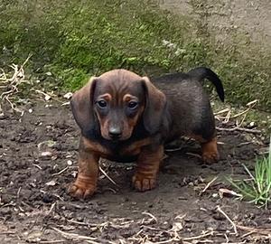Cucciolo maschio di bassotto nano di 3 mesi , colore fulvo, dotato di forte struttura muscolo - scheletrica, sano, robusto , molto simpatico, allegro ed esuberante Munito di libretto sanitario . Visibile presso mio allevamento, ubicato nelle campagne della Brianza . contatto Umberto 3474638626