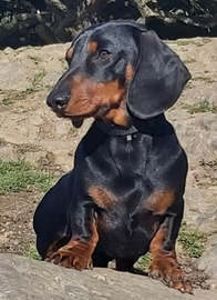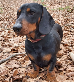 Per motivi familiari si cede a soli amanti degli animali splendida bassottina nana di 3 anni a pelo corto neero focato, carattere mite ed equilibrata, ben socializzata con persone adulte, bambini e altri animali .