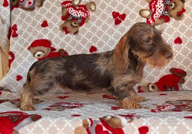 Allevamento riconosciuto ENCI FCI dispone di cucciolo maschi di bassotto nano pelo duro arlecchino. I cuccioli vengono ceduti cn microchip, ciclo vaccinale pedigree e test genetico dei genitori sulle principali malattie ereditarie . Nati e cresciuti in casa.