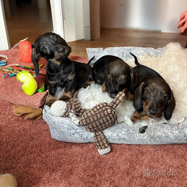 Si cedono splendide bassotto taglia nano color cingile 750 euro un maschioed una femmina subitodisponibili, con carattere dolce ed equilibrato. Informazioni sanitarie: Prima vaccinazione effettuata 2 Sverminazione Controllo veterinario generale eseguito microchip Cresciute in ambiente familiare, ben socializzate, abituate al contatto umano e ad altri animali. Usano gia la traversina. Mamma visibile, Per informazioni, foto e visite conoscitive, contattare in privato; 3792098313