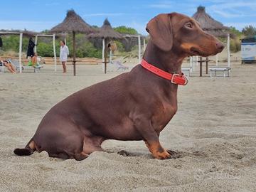 Mi chiamo Gianni, sono un bassotto (taglia nana) maschio a pelo raso color cioccolato (fulvo focato), nato a ottobre 2022.