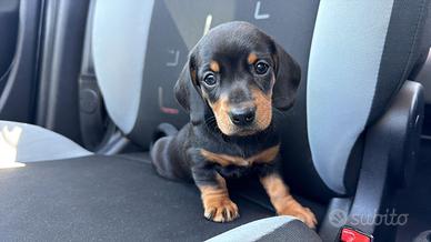 Vendo stupendi cuccioli di bassotto taglia piccola nero focato femmina e maschio a 600 euro, Fantastici cuccioli di 65 giorni circa , colorazione bellissima e rara , molto dolce ed affettuosi , ceduto con LIBRETTO SANITARIO PRIMO VACCINO 2 sverminazioni VISITA SANITARIA Adatti ad anziani e bambini , prezzo non trattabile , occhi chiari , no rate . curati nei minimi dettagli . No perditempo no allevatori no rivenditori solo se interessati realmente contattatemi al num 3204888203 Peppe