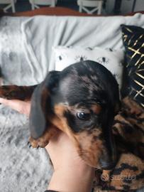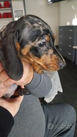 Vendo un cucciolo di bassotto nano tedesco arlecchino silver, nato il 19/11/2025 sesso maschio, con due sverminazioni, vaccino e libretto sanitario, solo persone seriamente interessate no perditempo. Prezzo trattabile, luogo Cologna Spiaggia ( Te ). Info: 3391212757 Anna.