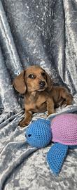 Si cedono splendide femmine e maschi di Bassotto taglia nano colore cioccolato 800 euro un maschio ed una femmina color arlecchino gold 700 euro (maschio), color cioccolatot tina unita una maschio ed una femmina 800 euro con carattere dolce ed equilibrato. Informazioni sanitarie: Prima vaccinazione effettuata 2 Sverminazione Controllo veterinario generale eseguito microchip Cresciute in ambiente familiare, ben socializzate, abituate al contatto umano e ad altri animali. Usano gia la traversina. Mamma visibile, Per informazioni, foto e visite conoscitive, contattare in privato; 3792098313