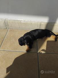 Vendo cucciolo di bassotto maschio, nero focato di 2 mesi e mezzo con libretto sanitario, vaccino, microchip già svermiato, lo vendo a 500 euro
