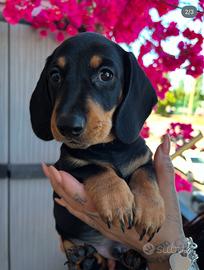 Bassotto maschio standard Pedigree Enci Alta genealogia Linea di sangue russo/tedesche viene ceduto sverminato, microchippato e con 2 vaccini. Genitori visibili Nato il 13/04/25 NO PERDITEMPO solo amanti della razza e persone serie.