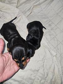 Disponibile in Allevamento Cucciolisole bellissimo cucciolo di bassotto nano pronto a due mesi. I nostri cuccioli nascono e crescono in casa con l'amore di tutta la famiglia, sono socializzati con altri cani e gatti e amano giocare con I bambini... Il cucciolo avrà doppia sverminazione, primo e secondo vaccino, libretto sanitario e visita veterinaria, trattamento antiparassitario, microchip con relativo passaggio di proprietà, inclusa consegna che facciamo di PERSONA in tutta ITALIA. PEDIGREE ENCI ALLEVAMENTO CUCCIOLISOLE anche whatapp al 329 6954062