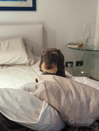 Bassotto a pelo duro taglia standard (di piccole dimensioni, ma senza conferma taglia) nato a ottobre 2024, con ottima genealogia e pedigree, disponibile per monte. La disponibilità è per monte solo con femmina a pelo duro taglia nano o standard e con pedigree.
