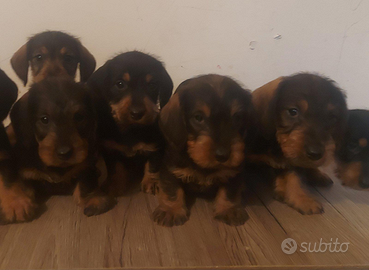 Si cedono splendide bassotto taglia nano color cingile 750 euro un maschioed una femmina subitodisponibili, con carattere dolce ed equilibrato. Informazioni sanitarie: Prima vaccinazione effettuata 2 Sverminazione Controllo veterinario generale eseguito microchip Cresciute in ambiente familiare, ben socializzate, abituate al contatto umano e ad altri animali. Usano gia la traversina. Mamma visibile, Per informazioni, foto e visite conoscitive, contattare in privato; 3792098313