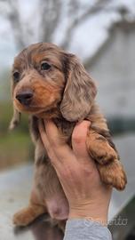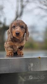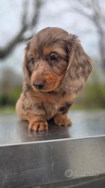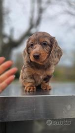 Bassotto pelo lungo maschietto arlecchino