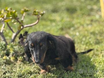 Meravigliosa cucciolata di razza bassotto pelo lungo Al momento hanno due mesi di età Vengono ceduti con primo vaccino microchip e sverminazione Genitori visibilità Offriamo servizio di consegna Pagamento dilazionato 12 rate ,3 oppure 4 PER FAVORE CHIEDIAMO CONTATTO TELEFONICO OPPURE WHATSAPP AL 3517180048 No mail
