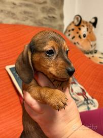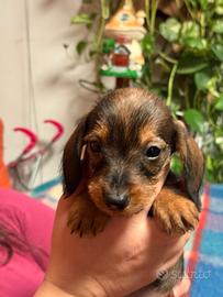Su cedono dopo i 90 giorni tre cuccioli maschi di bassotto nano/kaninchen a pelo ruvido con pedigree ENCI, adempimenti sanitari completi,puppy kit,figli di genitori testati geneticamente con DNA depositato