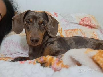 Disponibile bassotto arlecchino cioccolato per monta, di due anni con pedigree.