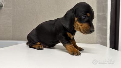 Vendo stupendi cuccioli di bassotto taglia piccola nero focato femmina e maschio a 600 euro, Fantastici cuccioli di 65 giorni circa , colorazione bellissima e rara , molto dolce ed affettuosi , ceduto con LIBRETTO SANITARIO PRIMO VACCINO 2 sverminazioni VISITA SANITARIA Adatti ad anziani e bambini , prezzo non trattabile , occhi chiari , no rate . curati nei minimi dettagli . No perditempo no allevatori no rivenditori solo se interessati realmente contattatemi al num 3204888203 Peppe