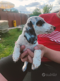 Splendidi cuccioli di bassotto piebald con genitori visibili entrambi di mia proprietà