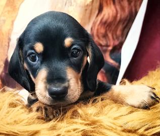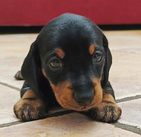 Allevamento dispone di ultimo cucciolo disponible, maschio nero focato nato da mamma kaninchen arlecchina e papà nano cioccolato (entrambi molto piccoli). Effettuati controlli genetici. Si cede da metà dicembre al compimento dei 70 giorni di vita con primo vaccino, microchip, 3 sverminazioni e pedigree Alianz