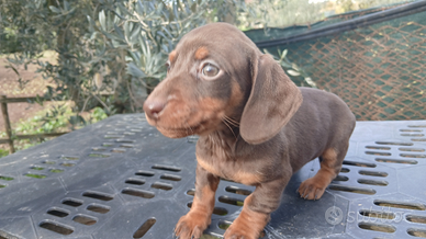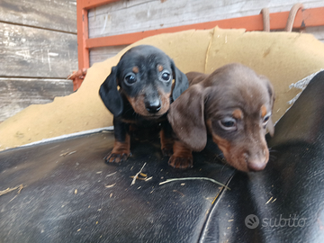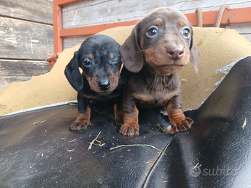 Bellissima cucciolata di bassotto kaninchen/nano cioccolato nero focato pelo raso di 55 giorni maschi e femmine madre nero focato nana padre colore cioccolato kaninchen entrambi visibili gia svezzati sverminati con libretto sanitario primo vaccino.no email.grazie no perditempo grazie chiamare per informazion