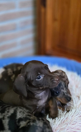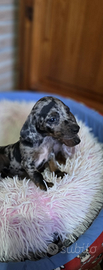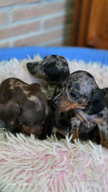 Cuccioli bassotto disponibili 1 femmina arlecchina silver un maschio arlecchino silver e maschio cioccolato con 2 sverminazioni e primo vaccino con libretto sanitario nati in casa avviati in traversina taglia nani prezzo cioccolato 500 prezzo femmina 700 prezzo maschio arlecchino silver 750