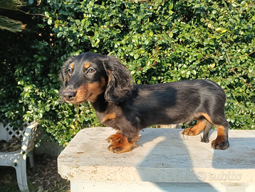 Bassotto tedesco a pelo lungo nero focato di 4 mesi , allevamento riconosciuto Enci, alta genealogia, 4 mesi affettuosissimo, socievole.