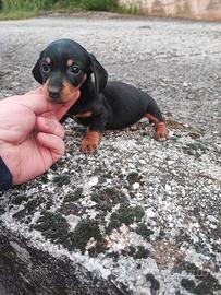 Disponibili cuccioli di bassotto Tedesco nella colorazione nero focato età 75 giorni provvisti di ciclo vaccini libretto sanitario microchip garanzia sanitaria. Genitori riproduttori selezionati entrambi visibili sul posto.