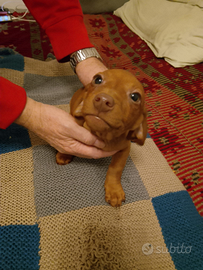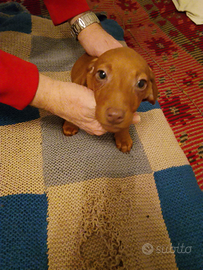 Disponibile fin da subito splendida femmina di razza bassotto tedesco, la cucciola a due mesi e mezzo ed è una coccolona cresciuta in un ambiente familiare con altri cani, di colore Choco Red è allegra e tiene molta compagnia, viene consegnata con i suoi documenti ( libretto sanitario) è stata vaccinata e sverminata e possiede il microchip è pronta per essere accolta da una nuova famiglia.