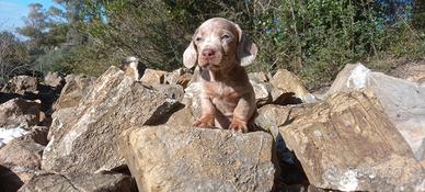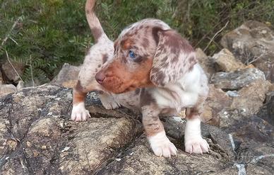 Splendidi e vivaci cucciolini di cani salsiccia dalle speciali colorazioni ...
