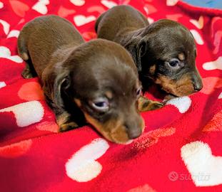 Maschietto cioccolato kaninchen pelo corto Ottimo pedigree Nato il 21 febbraio 2026. Si consegna con tutta la documentazione enci, microchip, vaccino e sverminatura completa Dolce ed affettuoso un meraviglioso cioccolatino Allevamento amatoriale Mamma visibile con cucciolo, papà campione di allevamento enci