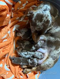 Bellissime e strepitose ultime 3 cucciole di bassotto tedesco nano/kaninchen femmine ,molto probabilmente kaninchen Arlecchino cioccolato ,pronte per essere prenotate, nate il 03/02/2026 , il DNA dei genitori depositato,