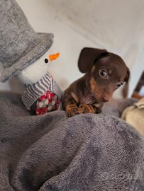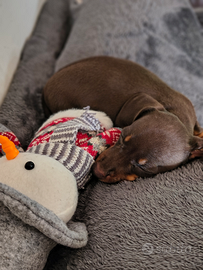 Cucciolo maschio cioccolato nato il 6 settembre,mamma nera focata nana e papà cioccolato arlecchino kaninchen, DNA depositati,test feci,microchip e vaccino,pedigree e affisso enci. Solo chiamate 3388357313.