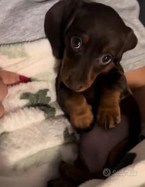 Disponibile femmina di bassotto di due mesi taglia kaninchen disponibile da subito viene ceduta con vaccino, sverminazioni complete, microchip e certificato di salute.