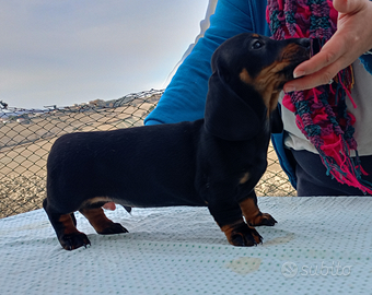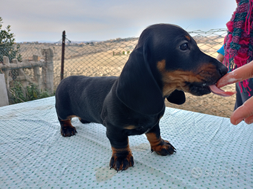 Disponibile bassotto tedesco taglia standard maschio con pedigree. Colore nero focato come da foto. Sarà disponibile da circa metà dicembre con pedigree, sverminato e vaccinato.