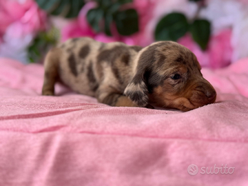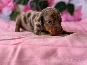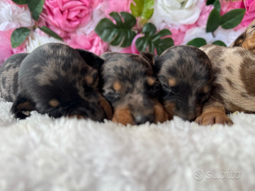 Sono disponibili bellissimi cuccioli di razza bassotto Prezi da 800 a 1500 cucciolata composta da sette esemplari divisi in tre femmine e tre maschi, i cuccioli in questo momento hanno un'età di 62 giorni, vengono ceduti alle nuove famiglie con: il primo vaccino, l'iscrizione all'anagrafe canina ovvero microchip, ciclo di sverminazione effettuato, trattamento parassitario compreso. Ogni cucciolo ha la consegna viene rilasciato anche un certificato di garanzia sulla salute, genitori sono visibili nelle nostre fedi e geneticamente sono perfetti. Per qualsiasi informazione si prega di contattare il numero 348 78 65 954 gentilmente chiediamo di essere contattati per di persona o su WhatsApp non mandate mail perché non vengono prese in considerazione. Offriamo al cliente anche la consegna più è possibile rateizzare l'importo in più rate
